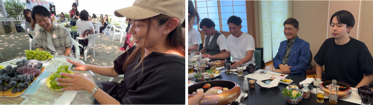 瑞々しく大粒のシャインマスカットを存分に味わった後は、老舗寿司割烹にて豪華寿司懐石を堪能し、社員たちは季節の味覚とともに特別な一日を楽しみました。