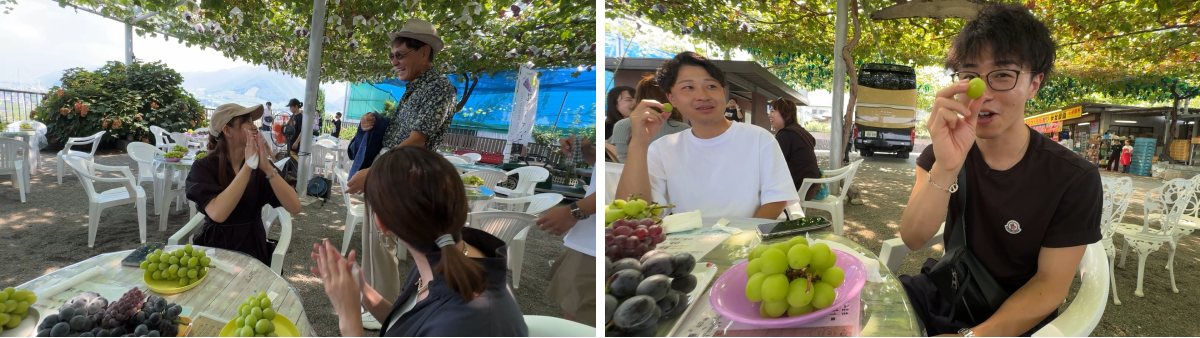 大粒で甘さも申し分ないシャインマスカットを頬張りながら、社員同士が交流を深め、旬の名残を楽しむひとときとなりました。