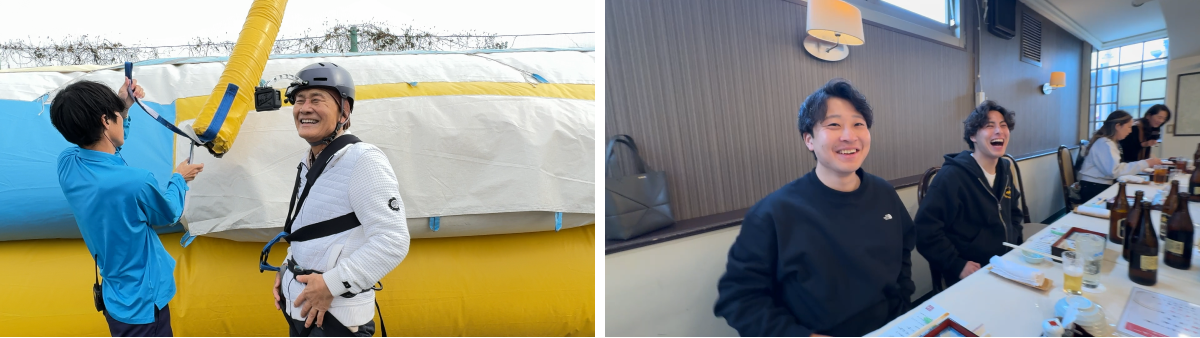 普段は職種が異なるため交流が少ない社員同士も、いーふらんの福利厚生制度を通じて交流の機会を持つことができました。バンジージャンプでは、代表取締役会長・渡辺喜久男も挑戦し、社員を勇気づける姿が印象的でした。